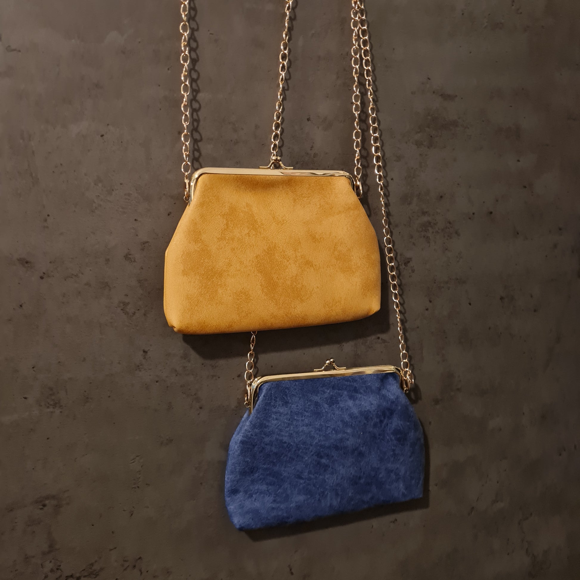 Die Tasche lässt sich entweder als Clutch in der Hand oder mit einer goldfarbenen Umhängekette über die Schulter tragen.
